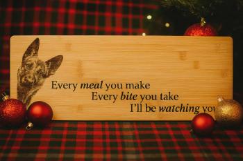 ![]() | Engraved Charcuterie Board - Malinois Kitchen Assistant Bamboo Charcuterie Board/Cutting Board engraved with a Malinois Watching You! This beautiful bamboo charcuterie/cutting board is a perfect size for serving your guests a variety of goodies! Cutout handles at the bottom of the board leave a solid, no hole surface on top. Please Note: Every wood board is unique. Differences in grain pattern, texture, and tone can affect how the laser engraving appears, resulting in natural variations in engraving darkness. These characteristics are part of the beauty of working with real wood. Dimensions: 19 3/4" x 8" Care Instructions: Hand wash only with warm water Apply light coat of Mineral oil at least once per year to keep it in top shape. Shipping in US only: $6.00 Please email info@malinoisrescue.org for prices on shipping outside of the US